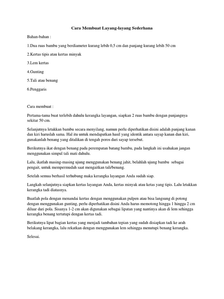 2 Bahan dan Alat. Ad Jaminan Harga Istimewa di Agoda. Admin dari blog Bagikan Contoh 2019 juga mengumpulkan gambar-gambar lainnya terkait contoh teks prosedur membuat layang layang dibawah ini.