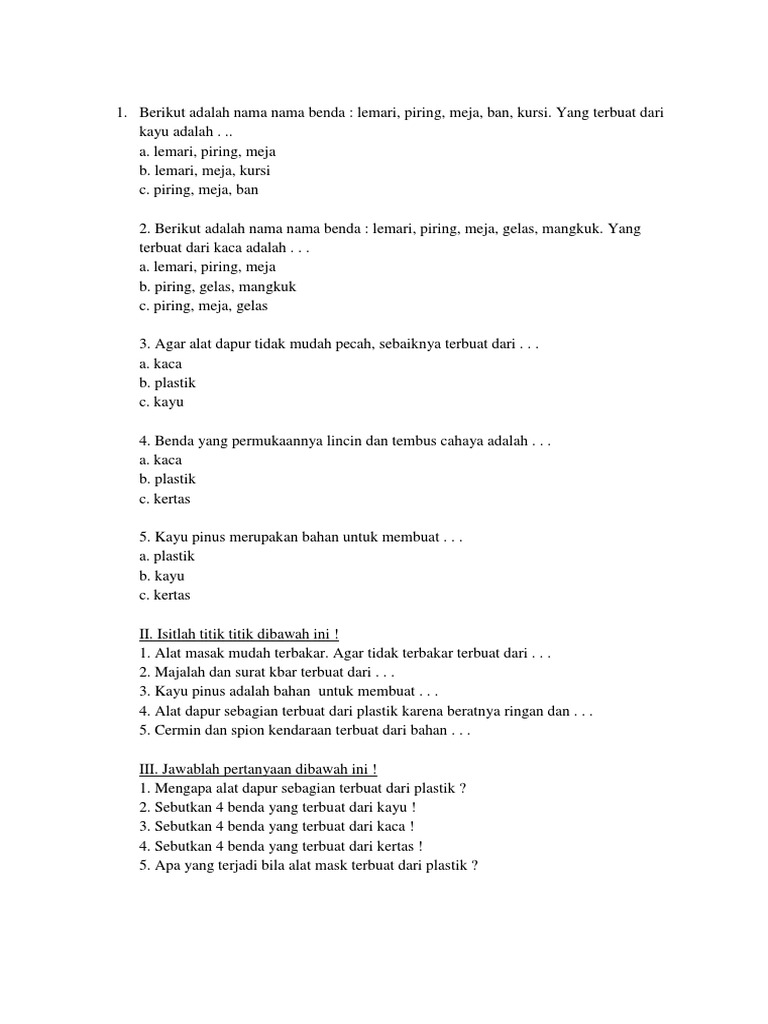 Contoh Soal Ipa Tentang Sifat Benda Dan Nama Benda