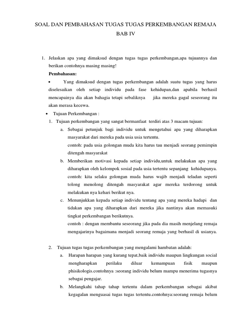 Soal Dan Pembahasan Tugas Tugas Perkembangan Remaja Bab Iv Docx Soal Dan Pembahasan Tugas Tugas Perkembangan Remaja Bab Iv 1 Jelaskan Apa Yang Course Hero