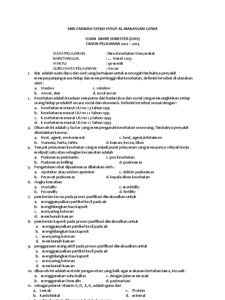 Kumpulan soal gizi smk keperawatan.pdf. Download Contoh Soal Uji Kompetensi Kesehatan Masyarakat Pdf PDF 1000 MB - SamPDF SamPDF Sukses Ukom Episode 9 Kunci Soal Uji Kompetensi Sukses Uji Kompetensi harus menggunakan strategi Sukses di Uji. Soal Teori Kejuruan STK Keperawatan UN-UNBK SMK 2018 yang sangat adik-adik siswa SMK butuhkan saat ini guna sebagai bahan perbekalan untuk menghadapi UNBK SMK tahun ajaran 20172018 nantiyang hubungannya dengana postingan kali initak lain motivasi buat meningkatan daya belajar yang harus agak diketatkan agar meraih proses yang menyenangkan dalam setiap lembar. X smk mak i Tugas guru yang paling utama terkait dengan RPP berbasis Kurikulum 2013 adalah menjabarkan silabus kedalam.
