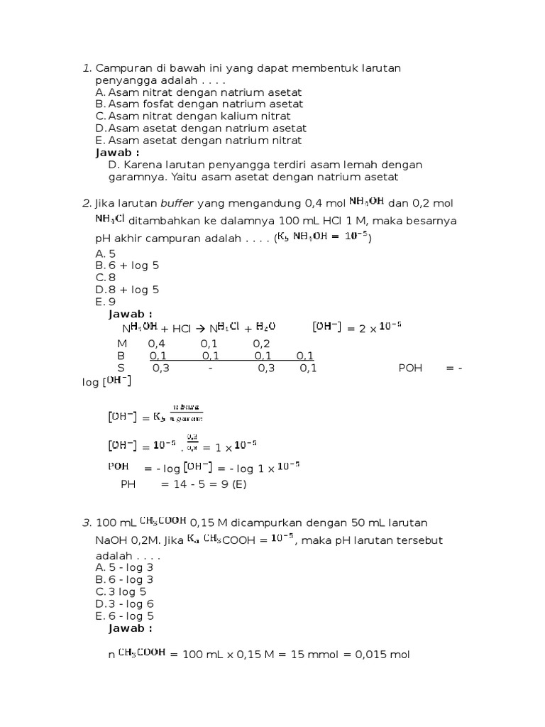 Kumpulan Soal Kimia Kelas Xi Larutan Penyangga