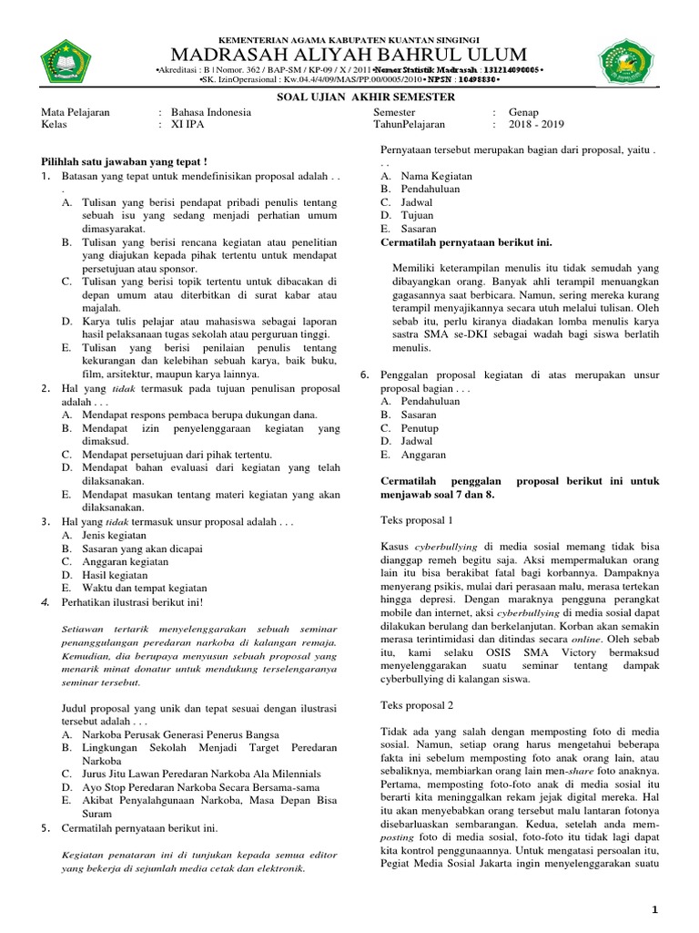 Soal Ulangan Bahasa Indonesia Kelas 11 Semester 2 Beserta Jawabannya Kunci Dunia