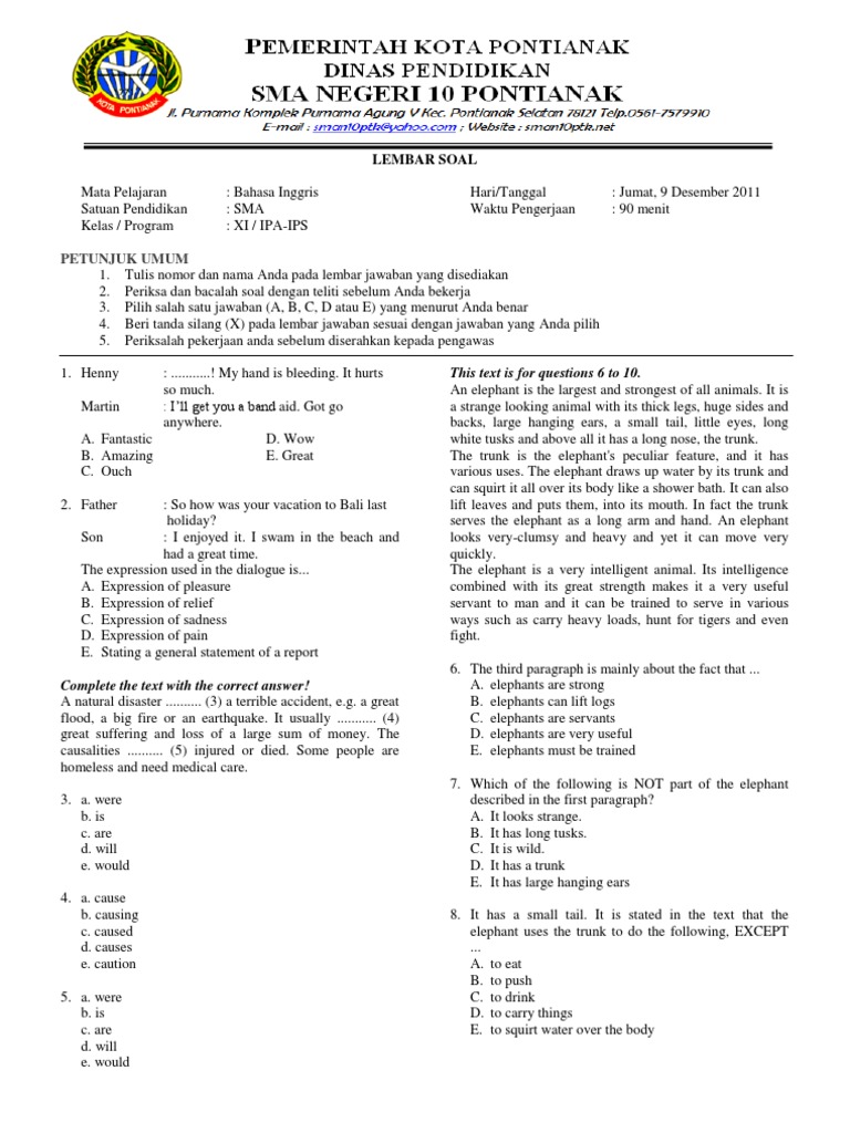 Soal Uas Bahasa Inggris Kelas Xi Semester 1 Ellipsis