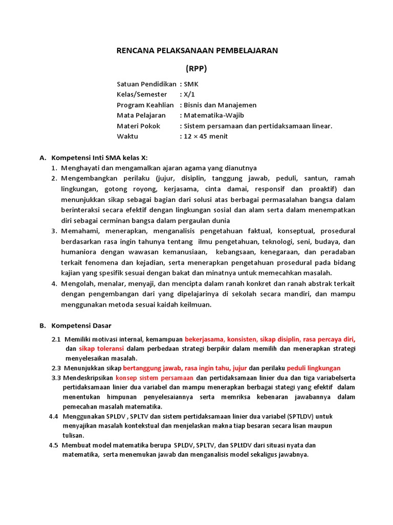 RPP Matematika SMASMK Kurikulum 2013 Sistem Persamaan dan Pertidaksamaan Linear pertemuan 2. Kalau belum subscribe klik subscribe dan nyalakan loncengnya biar tidak ketinggalan video menarik lainnya. RPP Satuan Pendidikan.
